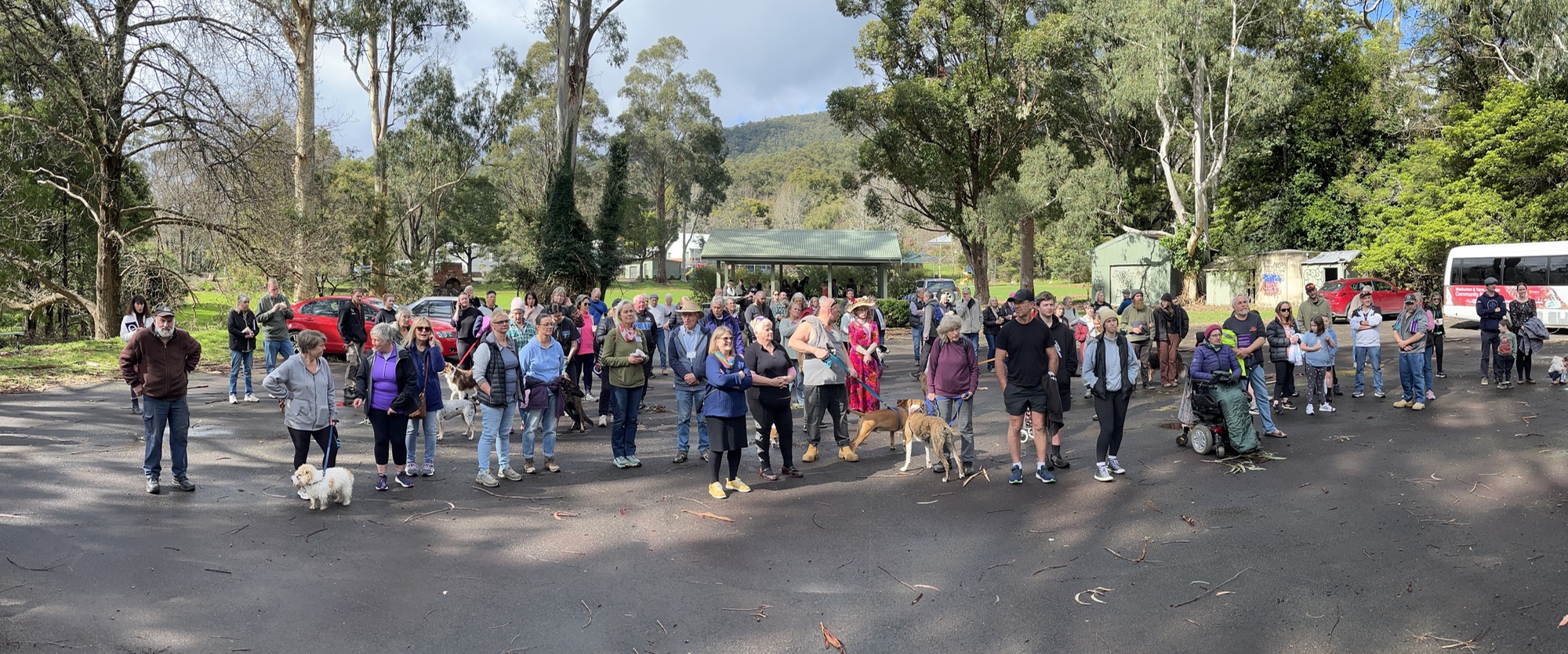 Over a hundred people met in Millgrove and walked to the Cerini Centre in Warburton to highlight the plight and the needs of the homeless in Upper Yarra region.
